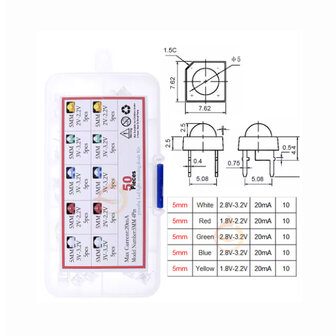 5mm Piranha LED Assortimentsset – 50 Stuks (Wit, Rood, Groen, Blauw, Geel) – Vierkante LED